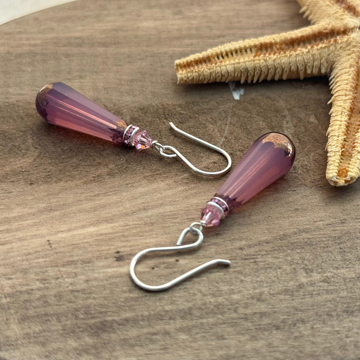 Czech Glass Pink Faceted Drop Earrings in Sterling Silver