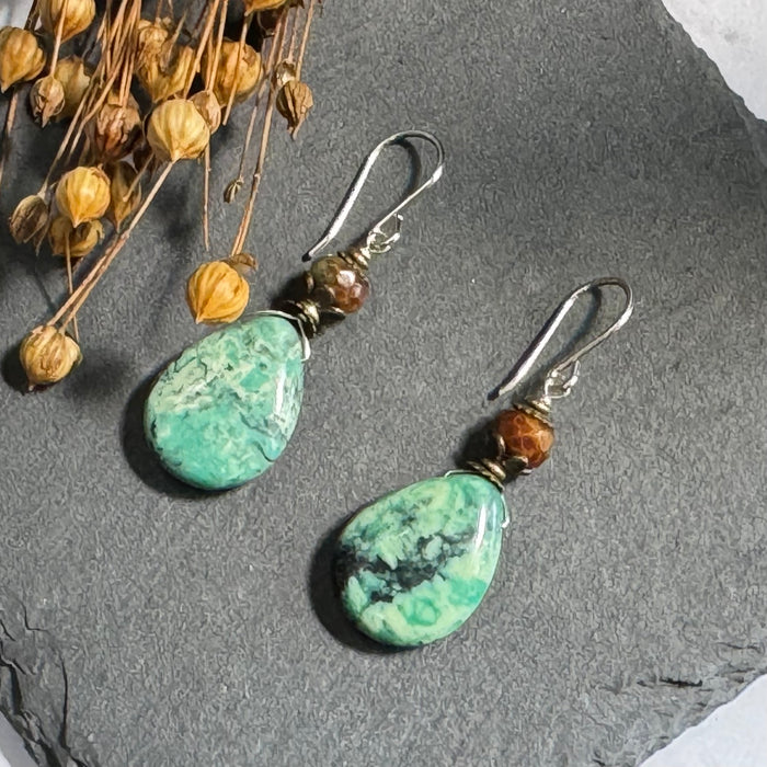 Victorian Autumn Czech Glass Drops with Brass Filigree Components in Sterling Silver